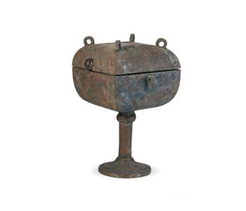 Bronze lidded Dou (food vessel) with deep, square bowl