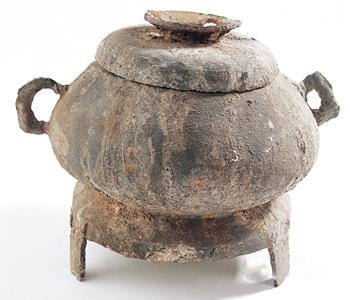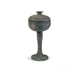 Bronze lidded Dou (food vessel) with deep, round bowl