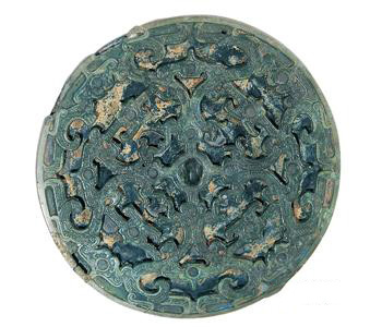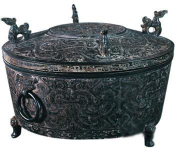 Vessel cover inlaid with could patterns and interlaced hydra design in gold