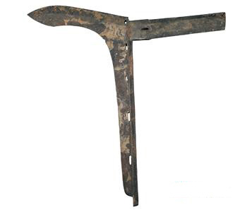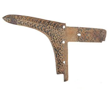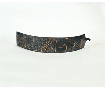 Iron Dai Gou (belt hook) inlaid with gold-and-silver dragon and phoenix design