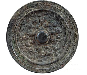 Bronze mirror carved with heavenly kings of the sun and the moon