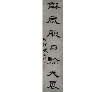 Qian Daxin (1728-1804), Heptasyllabic Couplet in Cursive-Clerical Script, hanging scroll