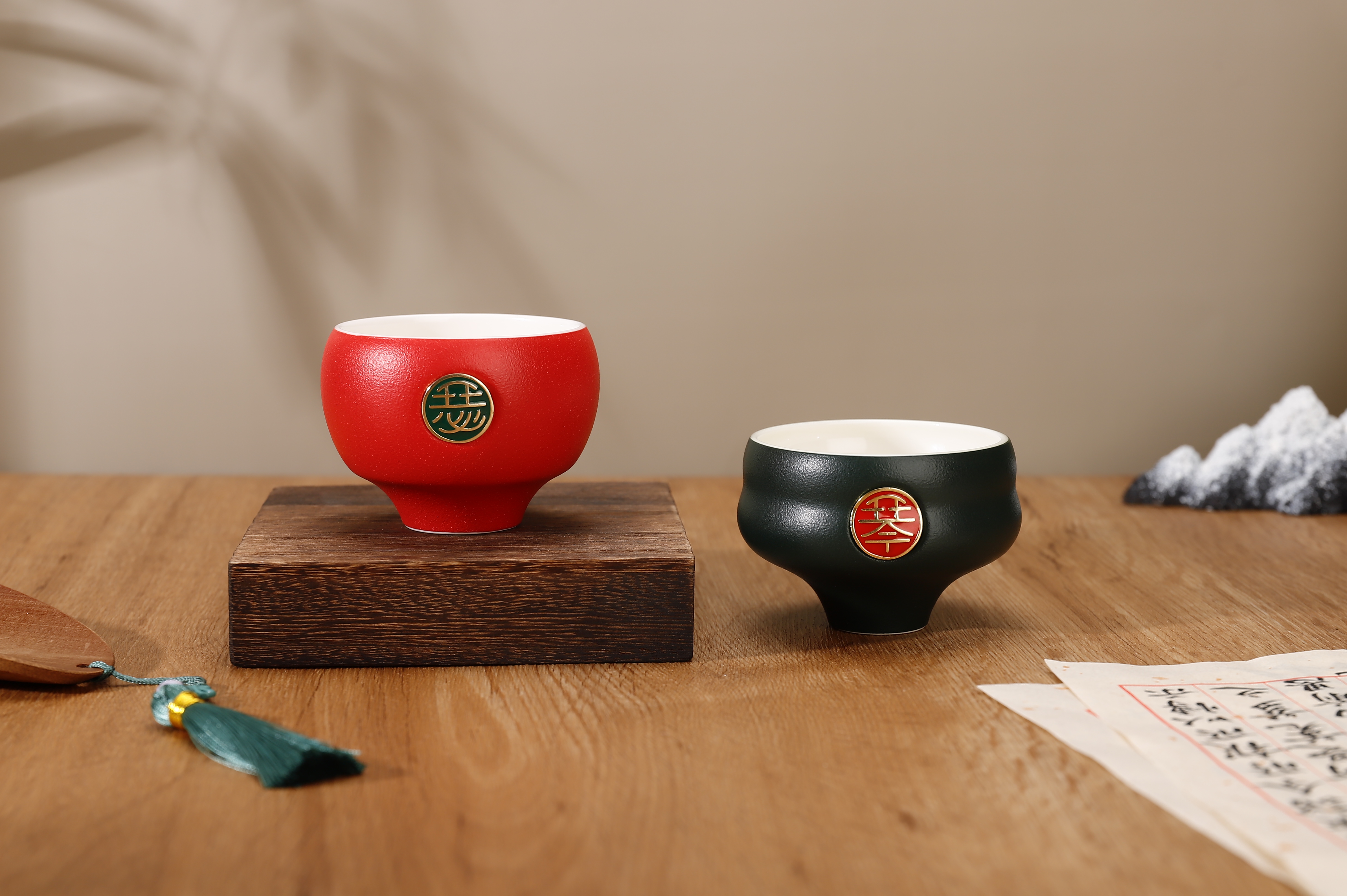 “Favored One” Coiled-Dragon Face Cup (Green)