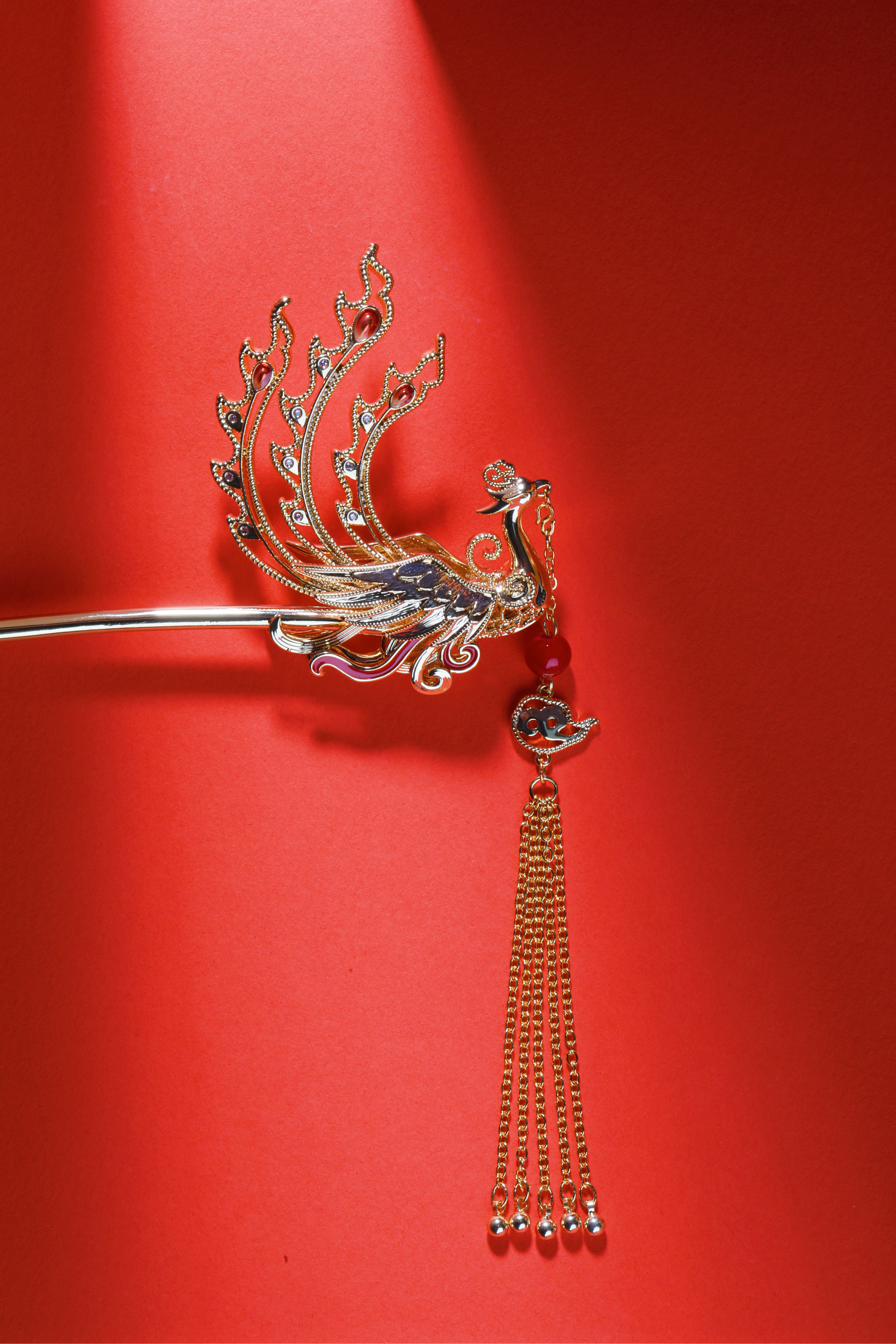 “A Coil of Raven Tresses” – Phoenixes in Flight Hairpin
