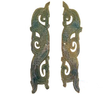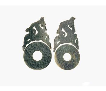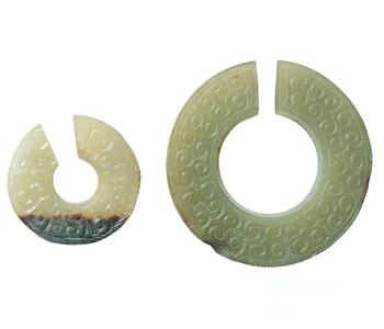 Circular ornaments of bluish-white jade with openwork rising sun pattern
