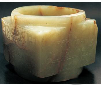 Jade Cong (ritual article) with animal mask patterns