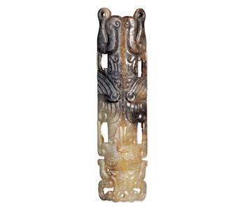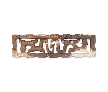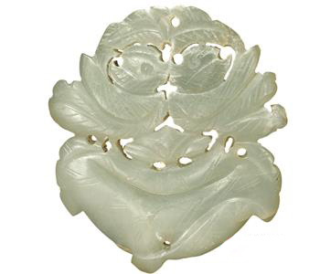 Openwork green jade pendant with mandarin ducks and lotus leaves