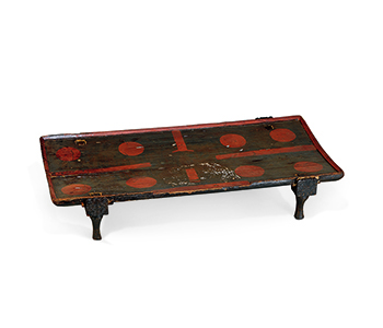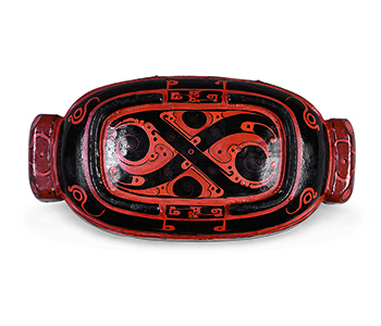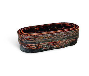 Lid of rectangular painted lacquer box with double boar-mouth-shaped ears