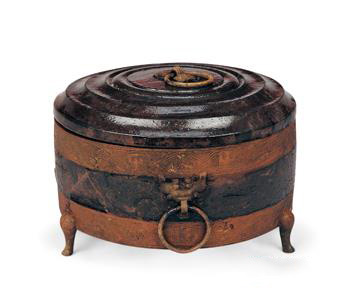 Oval painted lacquer Lian (dressing case) with cloud pattern