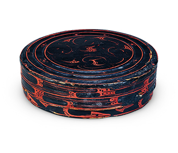 Lid of double-layered round painted lacquer Lian (dressing case) with cloud pattern
