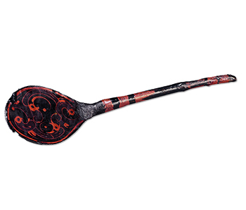 Painted lacquer Bi (ritual spoon) with cloud-and-phoenix pattern
