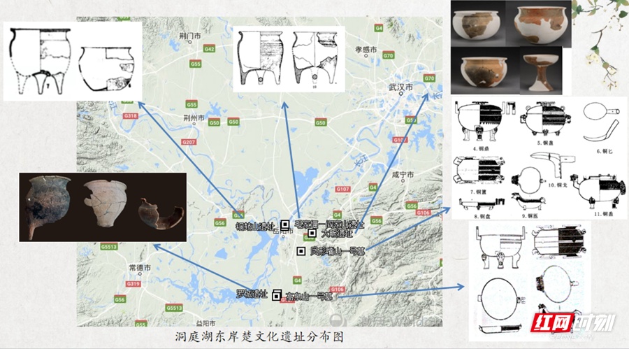 洞庭湖东岸楚文化遗址分布图。(湖南省文物考古研究院 供图)