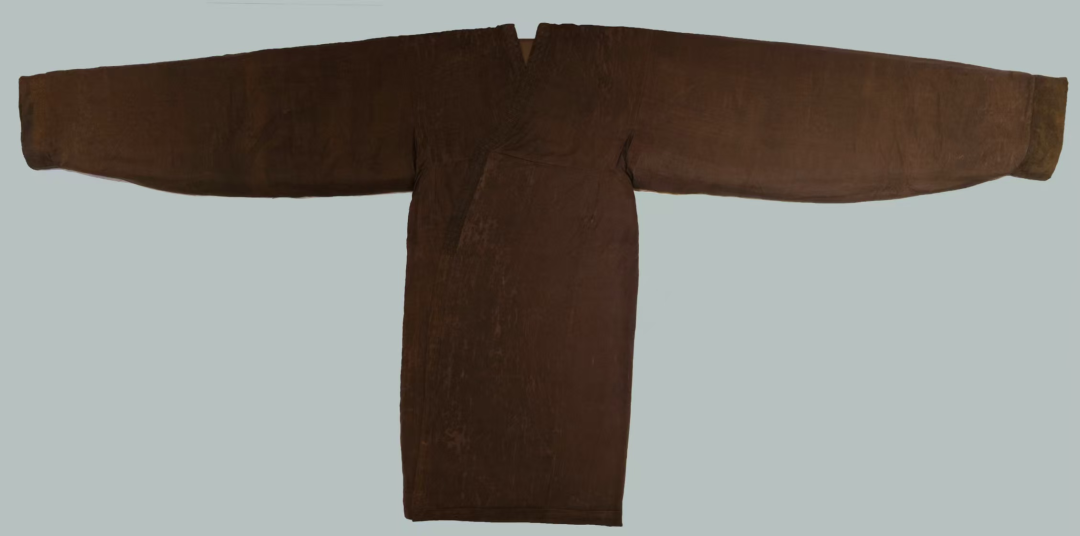 作为迄今发现最完整的战国丝织服饰之一,该锦袍袍料所用为二重平纹经锦,里衬为绢,领缘为花绦,袖缘用三重平纹经锦,裾和下摆用也用三重平纹经锦。一件衣服之上,汇集了四种织物,表现出了当时的多种织造技术,实属难能可贵。