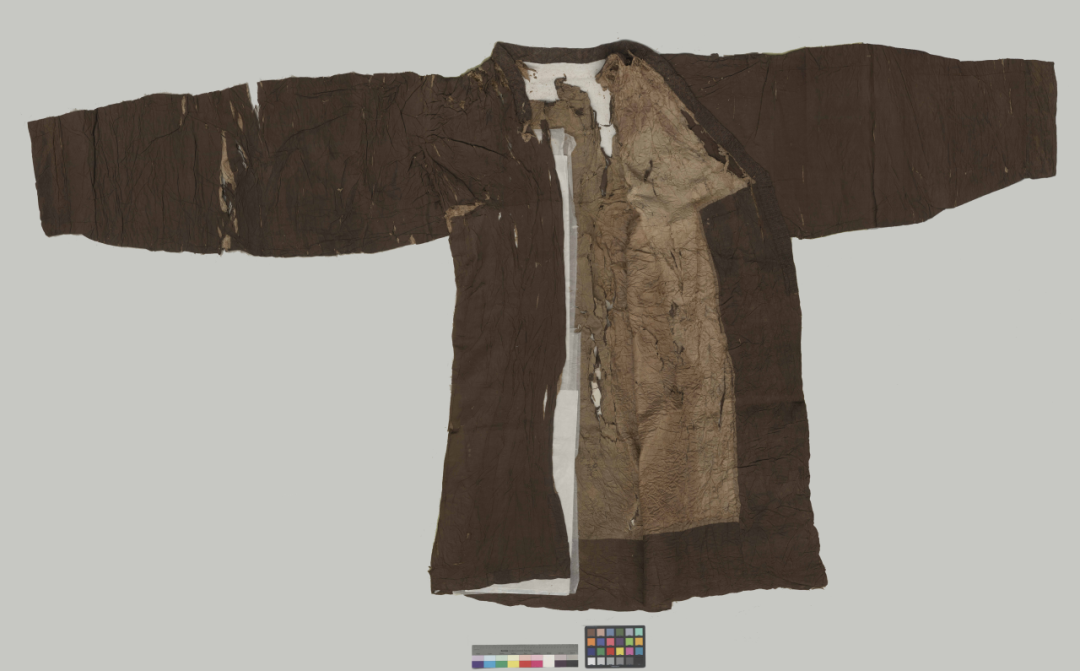 1982年,小菱形纹锦面绵袍出土于江陵马山战国楚墓,后入藏湖北省博物馆。因墓葬环境腐蚀,该锦袍糟朽严重,无法展出。2020年,在我馆筹备南馆楚国八百年展览之际,我馆联合中国丝绸博物馆对其进行加固保护。历时5年,近期完成加固保护工作,目前已经在楚国八百年展览中展出。