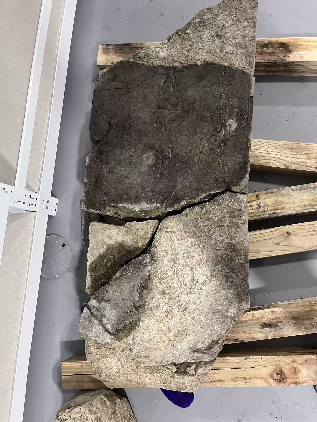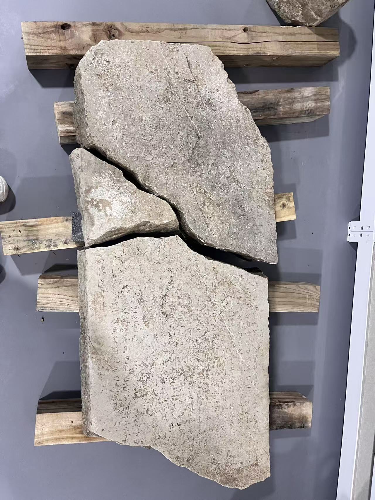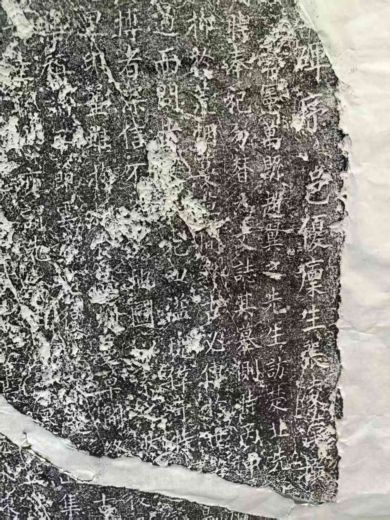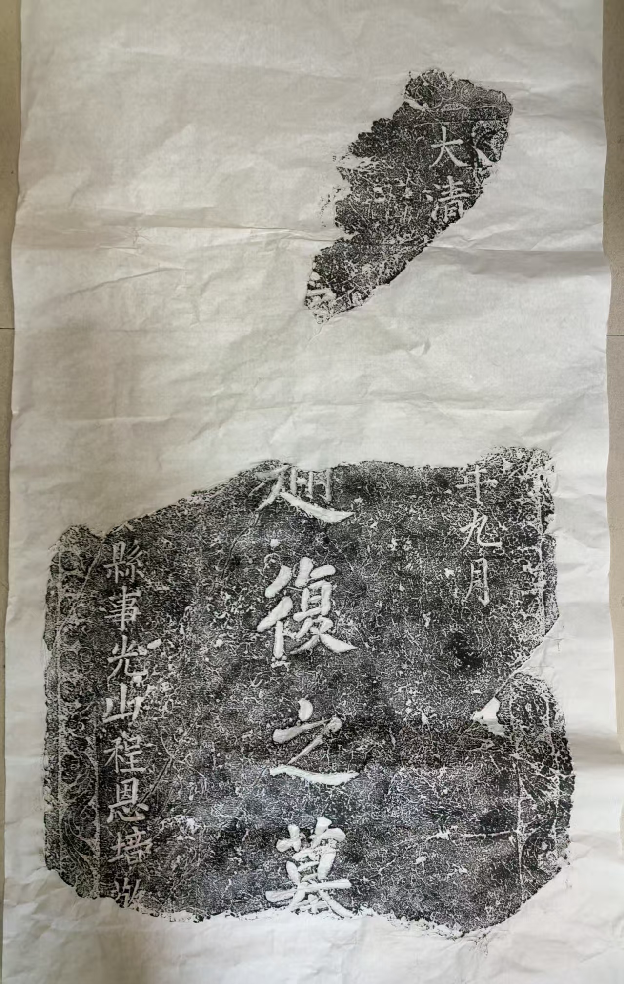 据当地村民介绍,该碑最早存放于胡金店镇四赵村大坟塘老祠堂内,祠堂被毁后被村民运回居所用作打豆腐的垫石。因为年代久远,又长期受到日常生活生产活动的影响,该碑现已断裂为三块,正背面均刻有文字,但残损比较严重。经清洗拼接后辨认,碑正面文字排列为三竖行,从右到左分别是“大清……年九月”“……赵复之墓”“……雲夢縣事光山程恩培敬□”。碑背面文字自题为“碑序”,经专家反复辨认,全文已基本可以通读。