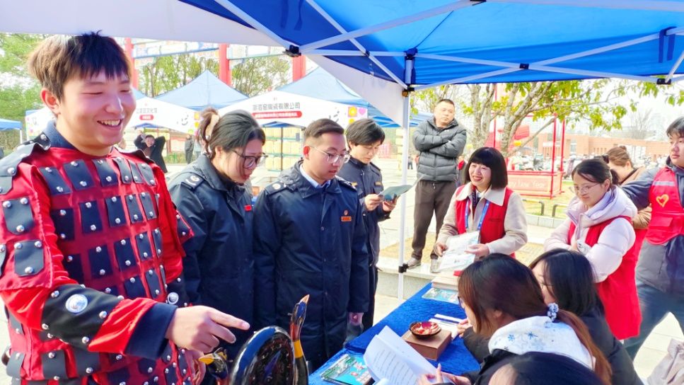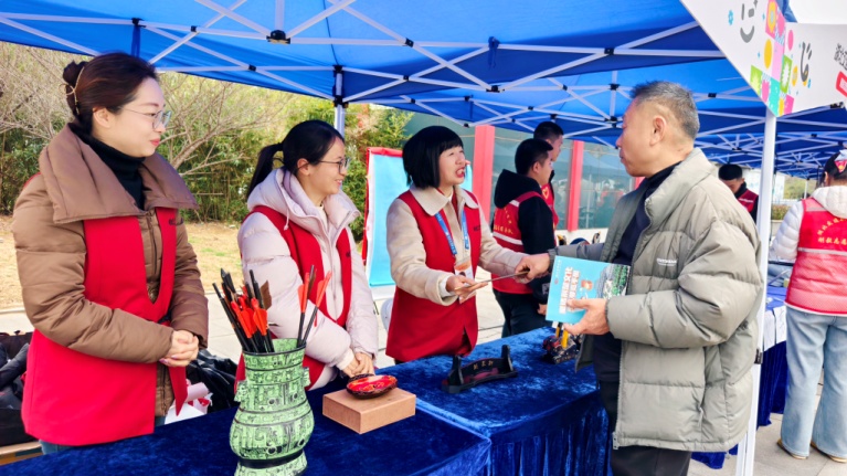 文物流动展台,志愿者们精心陈列越王勾践剑、虎座鸟架鼓、彩漆耳杯等多件馆藏代表性文物仿制件,为市民热情细致地讲解每件文物背后的历史故事与文化内涵,不仅将深藏博物馆的国宝“搬到”了市民身边,而且让尘封的历史走出展馆、走进大众生活,让厚重的历史文化变得可观可感、触手可及。