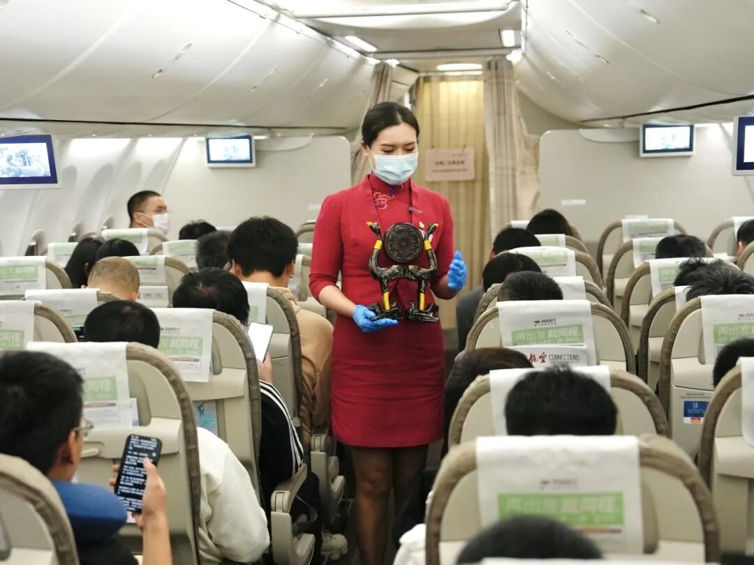 活动中,乘务员身着节假日专机制服,热情邀请旅客朗诵中秋主题古诗词,同时还进行了湖北省博物馆文物纪念款展示、中秋望月寄语等一系列具有传统文化特色的互动游戏,让旅客在轻松愉悦的氛围里忘却旅途归乡的疲惫,提前感受到中秋团聚的节日气氛。