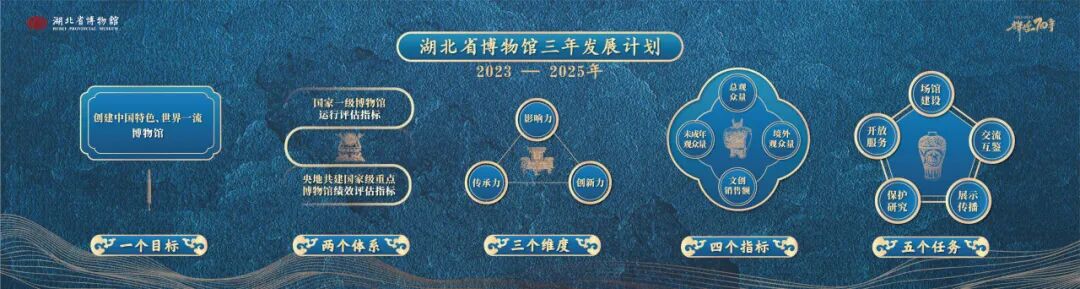 9月23-24日,举办建馆70周年系列活动,发布《湖北省博物馆三年(2023-2025年)发展计划》,推出70周年专题宣传片,与国内外相关机构签订战略合作协议,举办“文明交流互鉴视野下的博物馆文化传播”学术研讨会、举办“长江文明特展”、“70年回眸——湖北省博物馆编钟专场音乐会”。