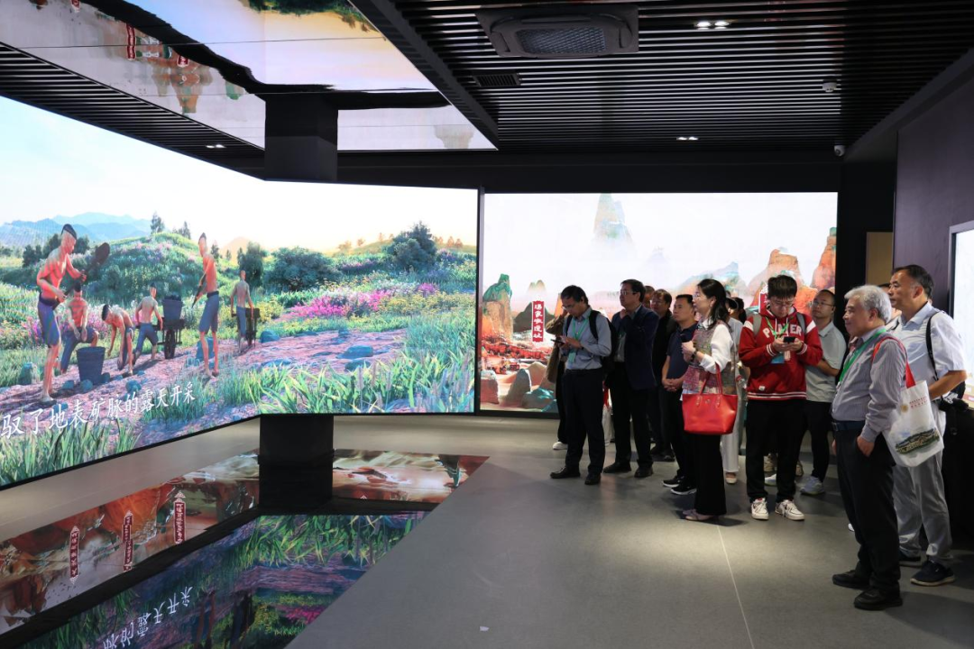 四周环幕以《长江文明时空长廊》交互系统,聚焦呈现“金道锡行”沿线安徽、江西、湖南、湖北、河南、陕西等地重要遗迹与遗物,观众可通过点击交互,深入探索这条青铜之路上的历史遗珍。