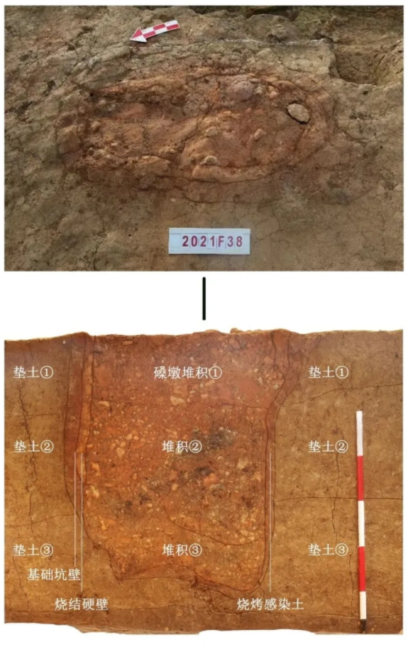 在屈家岭遗址中,考古人员发现了数量众多、体型庞大的磉墩遗迹,这些磉墩不仅制作工艺极为精细,而且展现了古代工匠们对建筑材料与技术的深刻理解与不断创新。经过考古研究发现,在磉墩的制作过程中,工匠们首先会挖去预置磉墩区域的原有软基层,以确保基础的稳固性。随后,他们会在挖好的坑内堆筑纯净的黄土台基,作为磉墩的基础。在黄土台基之上,工匠们会挖出深坑,并通过对坑壁的烧烤处理,形成一层坚硬的结面,以增强磉墩的耐久性。最后,他们使用红烧土混合黏土及少量焚烧过的猪骨,精心填充深坑,经过层层夯实,最终形成了坚固耐用的磉墩。这种复杂的制作工艺,不仅体现了古代工匠们对建筑结构的深刻理解及其精湛技艺,也反映了古人对建筑材料与技术的不断探索与创新。