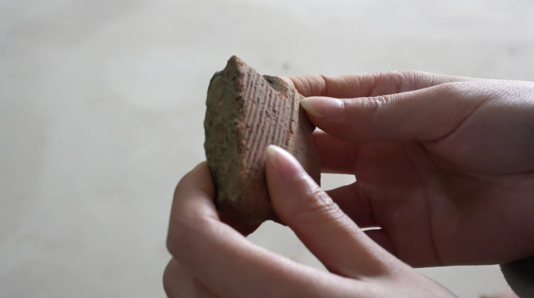 面对这些残破的陶片,考古队员们的工作并非简单地堆砌或丢弃。他们双手轻捧起一片片陶片,仔细观察陶胎中的蚌壳颗粒,这是大溪先民制陶时为了防止开裂而掺入的“配方”,就像是陶器的DNA。队员们按照质地、颜色、纹饰进行细致的分拣,每一片陶片都被赋予了它应有的位置。