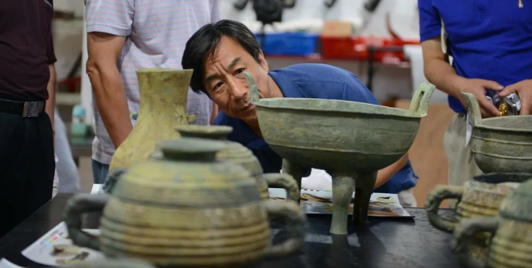 专家仔细打量曾国出土青铜器