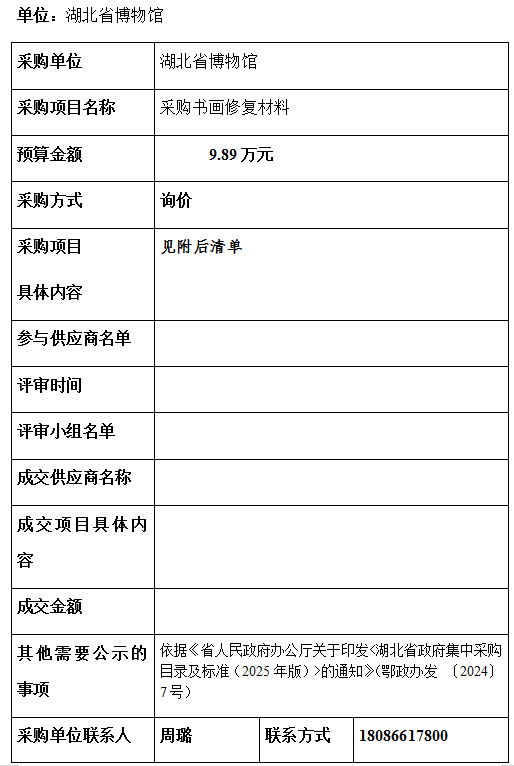 湖北省博物馆采购项目信息公告
